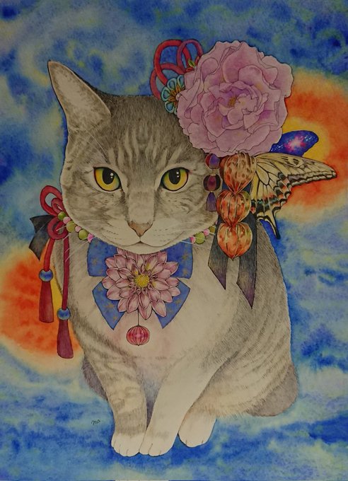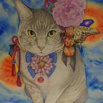 9 120 こっちのにゃんこは、生前可愛がってくれたご主人がいつかあの世に来るとき迷子にならないよう入口で待ってる猫。 数年前のお盆に描いた子。 #イラスト #お盆 23/08/11 06:29