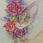 1 15 数日前に旦那が、フェルメールの「真珠の耳飾りの少女」を「青いターバンの女」だと思ってた!と言ってて、それからなんとなく頭から青が離れなくて描いた、青いリボンの猫さんです🐱 9cm×9cm #イラスト 23/06/23 16:05