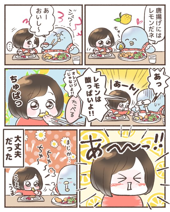 44 903 3歳娘がはじめてレモンを食べてみたところ… #育児漫画 #漫画が読めるハッシュタグ 22/10/08 08:36