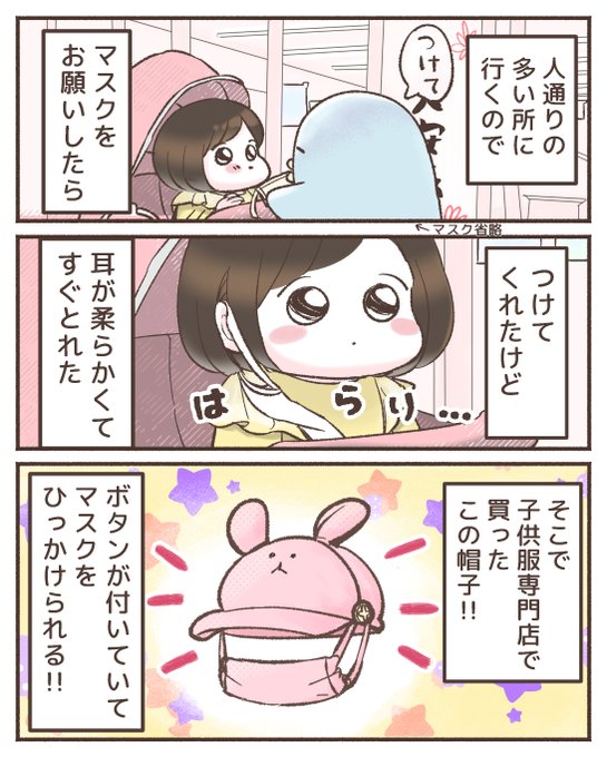 マスクがうまく付けられない娘もこれを使えば大丈夫だった。 #育児漫画 #漫画が読めるハッシュタグ
