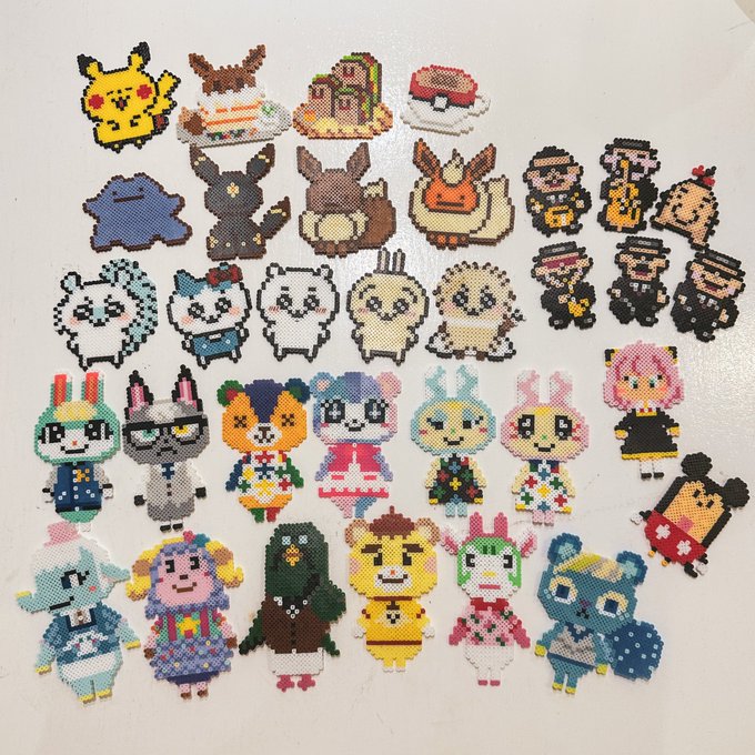 #アイロンビーズは無限大 図案を描くのが好きなので制作はカタツムリスピードだけど、好きなキャラを作って飾れるアイロンビーズは控えめに言って最高です! #あつ森 #ちいかわ #ポケモン #ドット絵