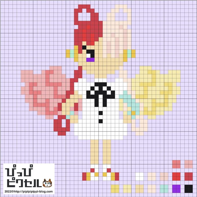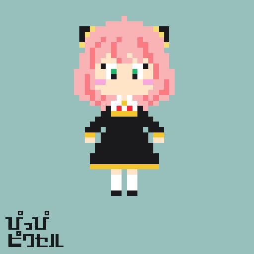 3 38 スパイファミリーのアーニャ。 口がありかなしか迷ったので両方! ビーズも作りたい。 #ドット絵 #pixelart #SPYxFamily 22/06/14 12:29