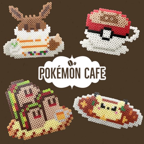 アプリゲーム「ポケモンカフェ ポケまぜ」のメニューが可愛すぎたのでアイロンビーズ にしてみた! ・イーブイカフェラテ ・イーブイパンケーキ ・ダグトリオサンド ・ピカチュウカレー #pixelart #ドット絵 #ポケモン