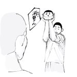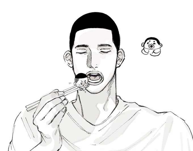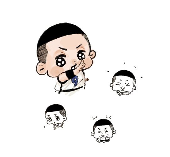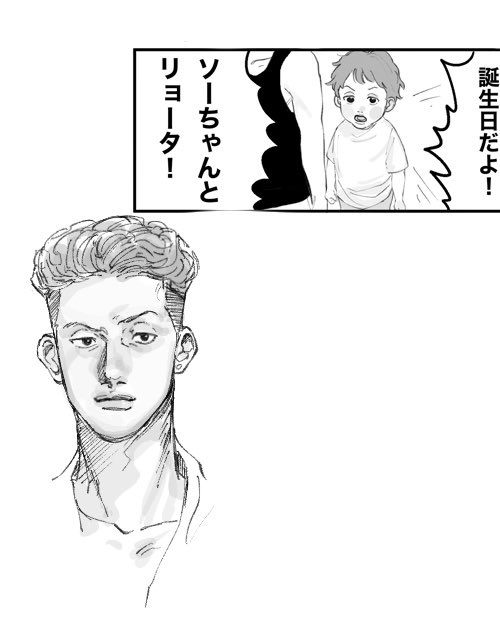 適当にリョちん落書きしたやつの隣にちいちゃいりょちゃん置いてみたら成長の仕方バグってて面白かった