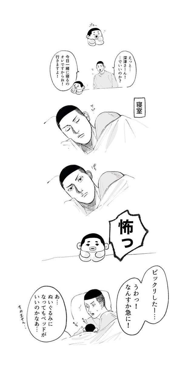ぬいぐるみになったばかりの。 初めて一緒に寝た日。