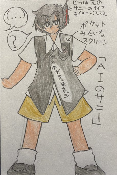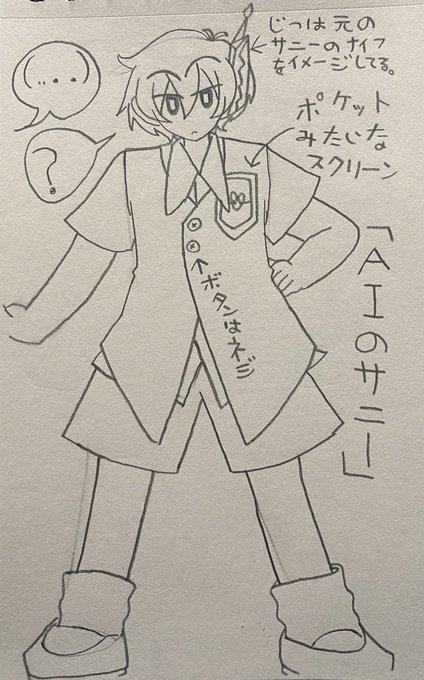 一応イメージを自分なりにしっかりさせたいのもあって、改めてほぼ全身描いて簡単なデザイン解説書いておいた。 あまり元のサニーから激変し過ぎないようにしてる…。 #お絵描き #イラスト #デザイン