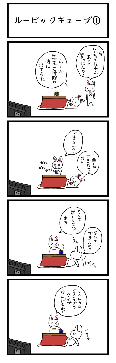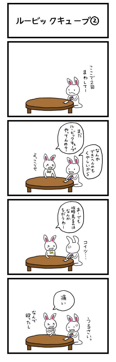 4コマ漫画【うさぎの妖精 兎野さん】 ルービックキューブ前回の続き 前回はこれ twitter.com/pippi_o__o/sta… #うさぎ #4コマ漫画 #ルービックキューブ #漫画が読めるハッシュタグ
