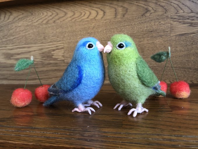 0 6 マメルリハのノーマルとブルーちゃんそれぞれ出品中です(さくらんぼ🍒付き)#マメルリハ #羊毛フェルト #ハンドメイド #インコ 21/12/06 07:27