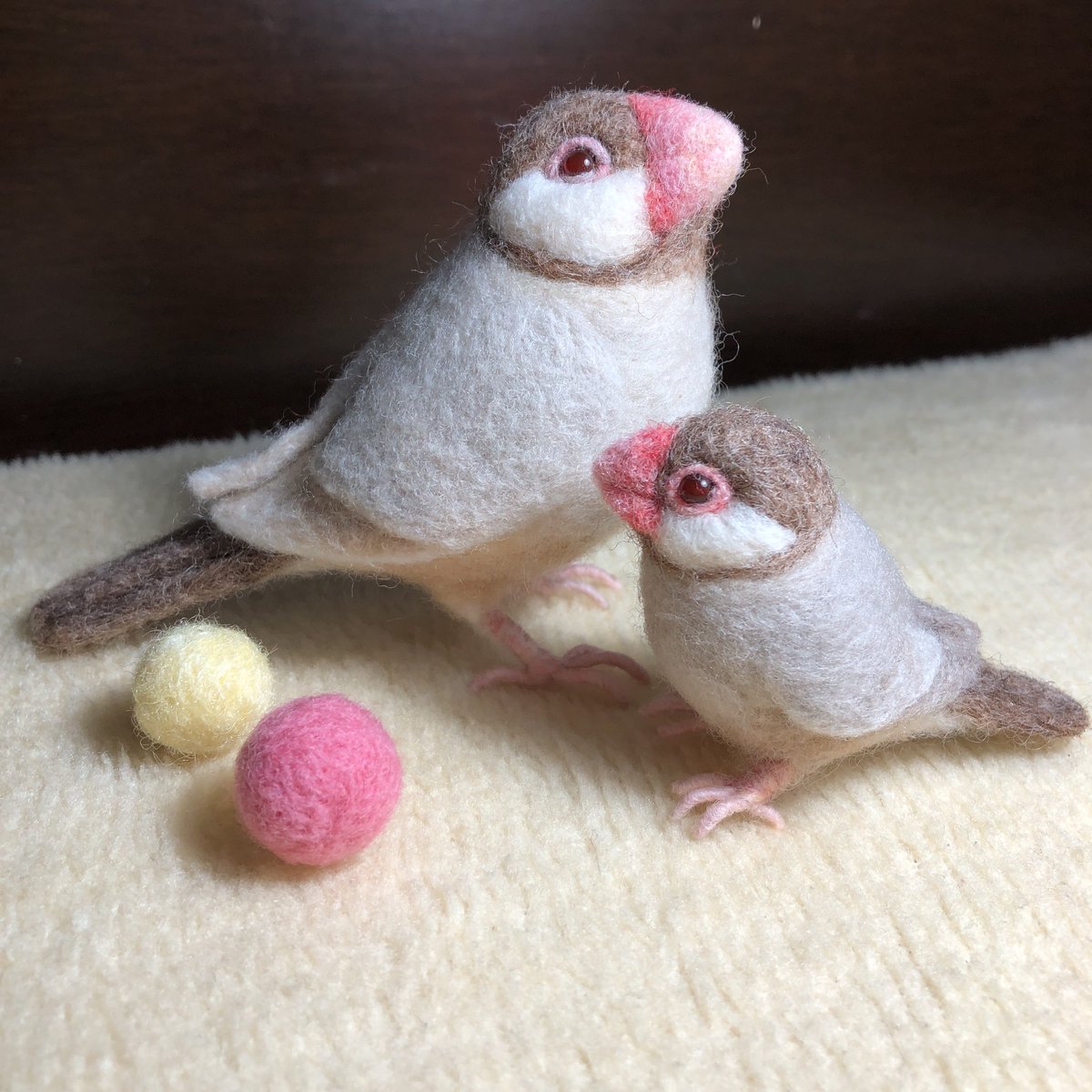 1 16 最近は大きいのと小さいの製作するのにハマってます。 もふもふのシマエナガちゃん達とシナモン文鳥達をヤフオクに出品中です。 鳥の形になってくると家のコザクラが威嚇し始めるのが嬉しい \( ◠‿◠ )/ww #羊毛フェルト #ハンドメイド #シマエナガ #文鳥 21/12/20 00:20