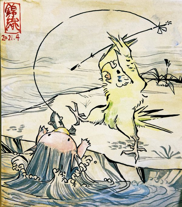 これビエちゃんのよーっ わーっ大漁だ!!! #鳥鳥戯画 #アマビエ #アマビェーナス