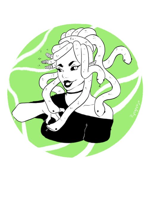 It’s been like a week since my last inktober, here’s a Medusa with derpy gummy worms because I don’t know how to draw sneks for day 16 of #inktober