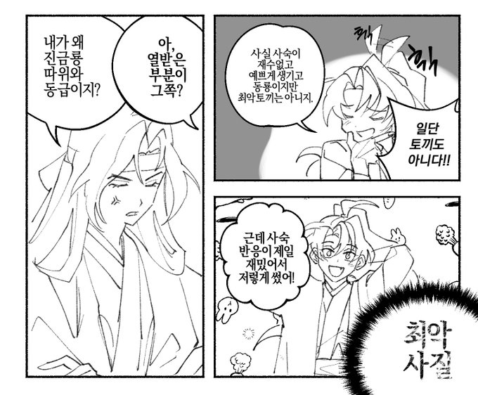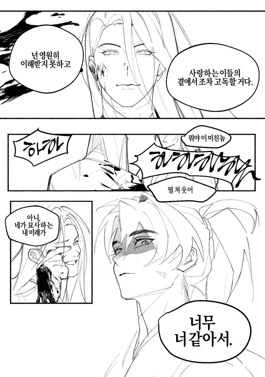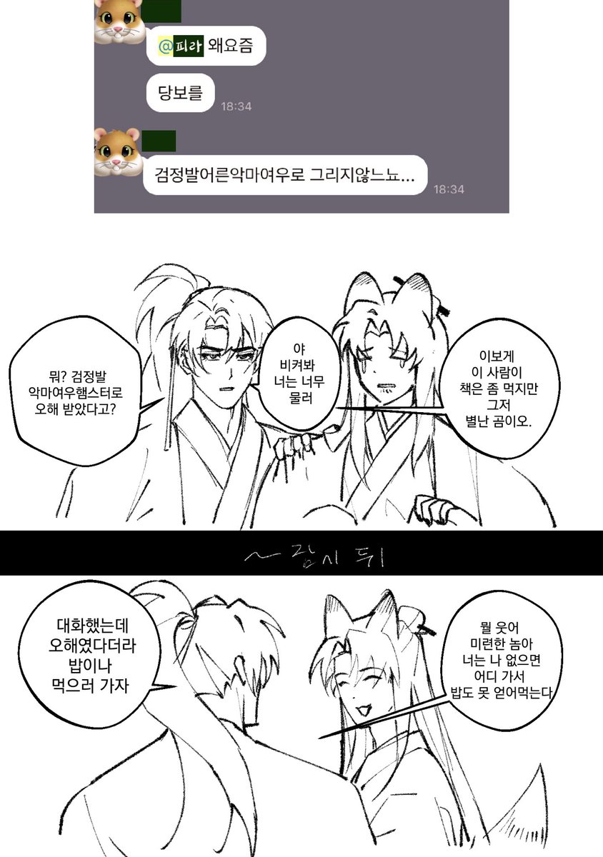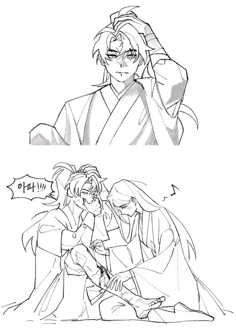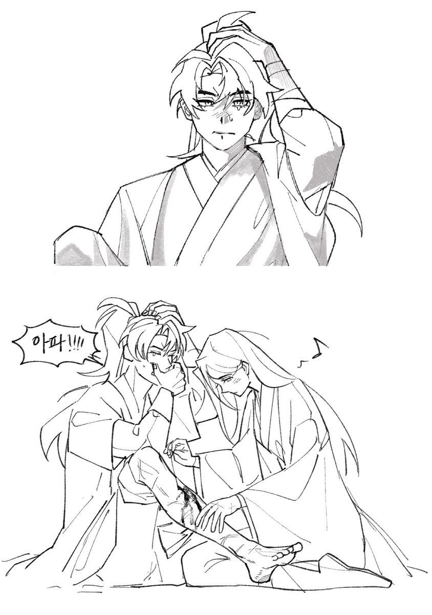 장일소와 청명으로 이해자에 대한 만화입니다. 칼로 손을 관통하는 장면이 있어 그 부분을 검열했습니다. 🐣