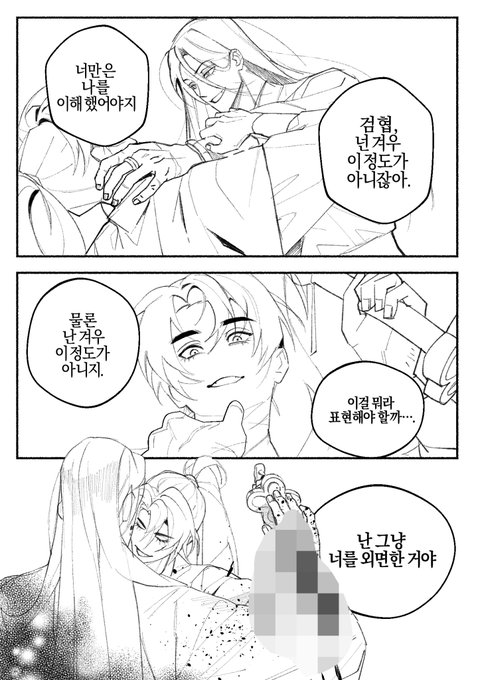 128 298 장일소와 청명으로 이해자에 대한 만화입니다. 칼로 손을 관통하는 장면이 있어 그 부분을 검열했습니다. 🐣 23/07/25 17:18