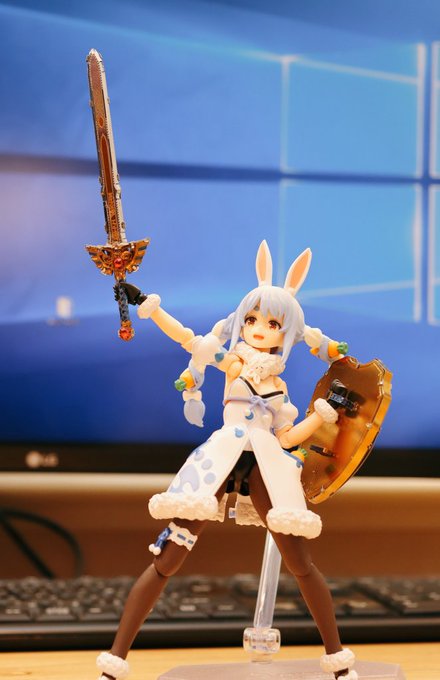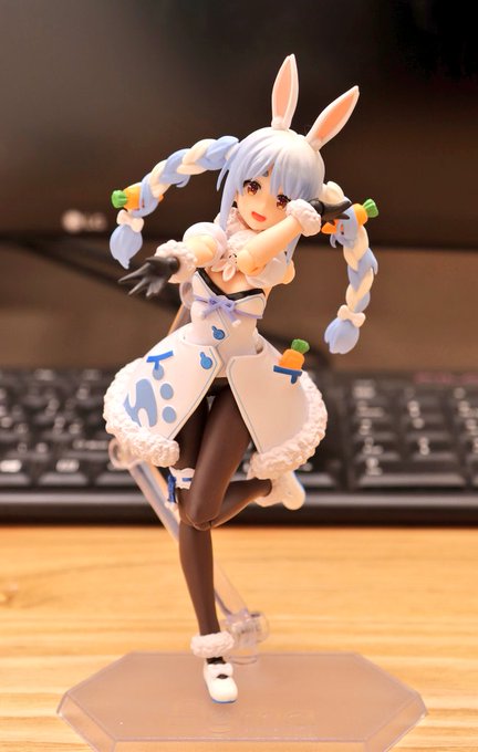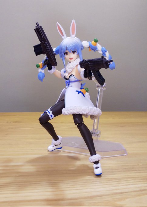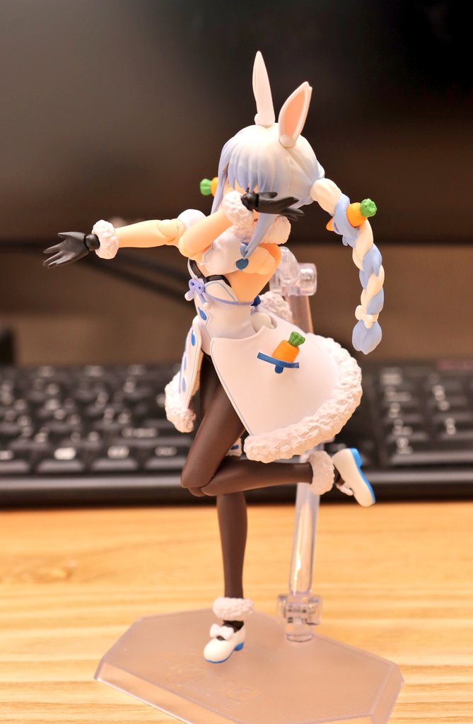 肩関節の引き出し機構導入によって、よりアイドルらしいポーズを決められるようになった #figma の兎化ぺこらさんです。 #ぺこらーと