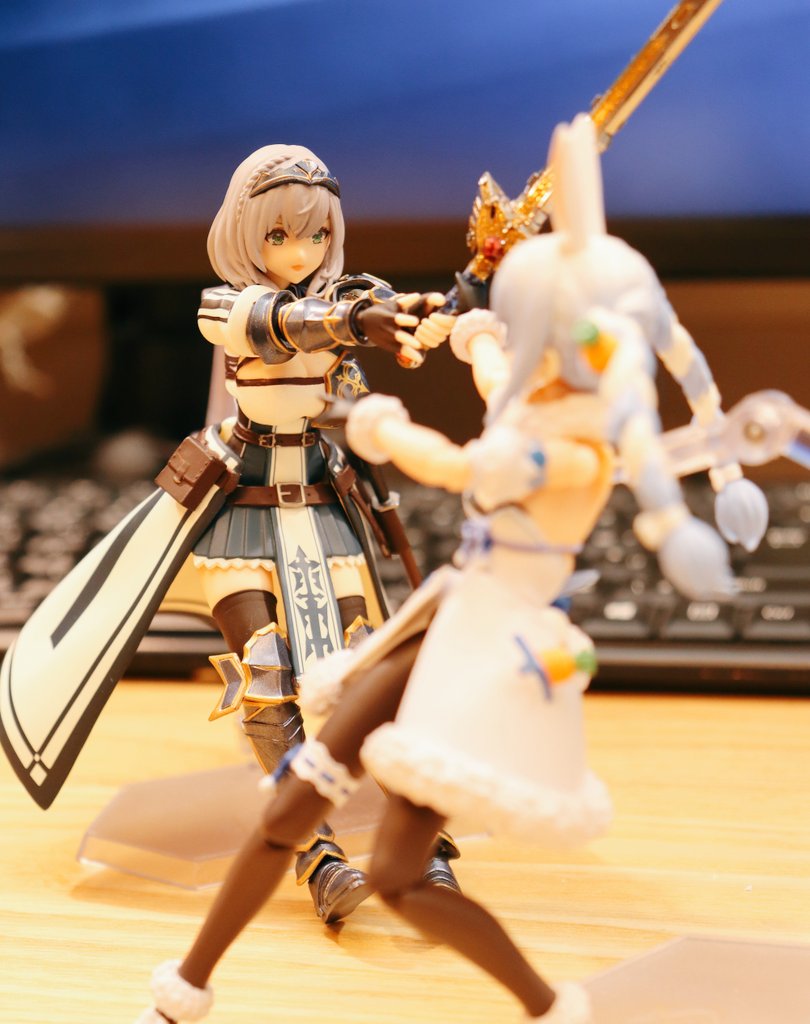 「勇者の剣、きtら~!!」 「いいな~、団長もほしい!」 「ちょ、お前もう武器持ってるぺこだろ!」 「やっぱこういうのは団長が持つのが似合うよね、騎士だし♪」 「か、返せぺこ~~!!!」 #figma #ぺこらーと #ノエラート