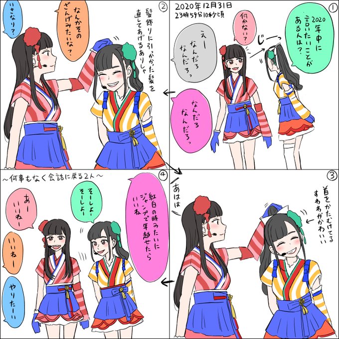 カウントダウンライブの2020年12月31日23:59:10頃、1番可愛かった瞬間を描きました。1stの時は直してあげるの逆だったよね😉もはやお互い何も言わないところが好き🙏7日までアーカイブあるので皆さん観ましょう…!