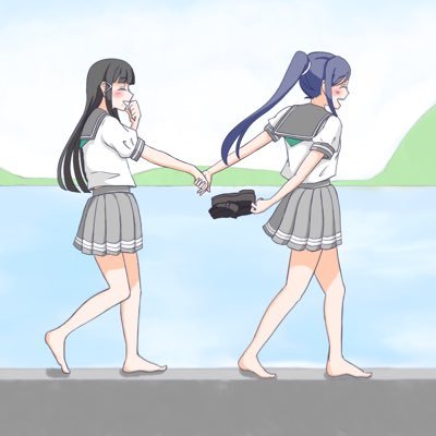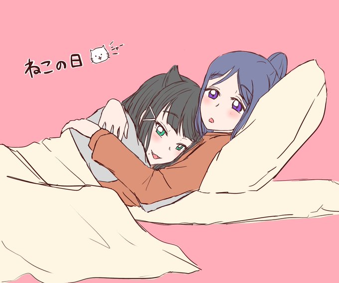 寝るまでは猫の日なので猫ダイヤと果南なかなダイを描きました🐬♦️🐈