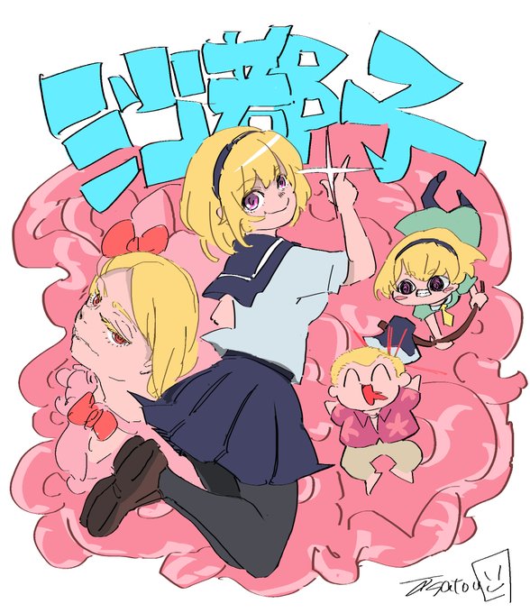 ひぐらしの沙都子描いたよ(ついでにラムダも) 後ろのピンクのウネウネはリカちゃんの腸だよキレイだネ~💩 #ひぐらしのなく頃に業