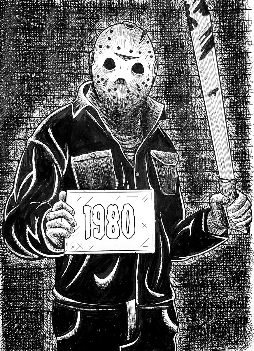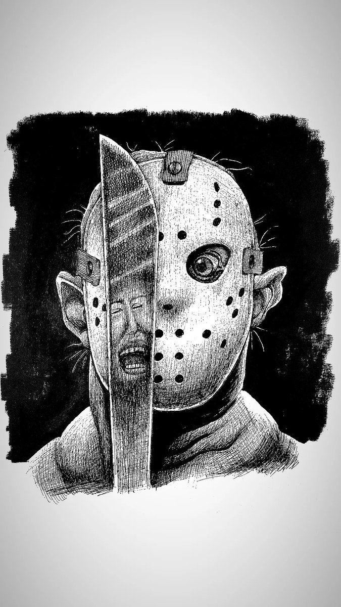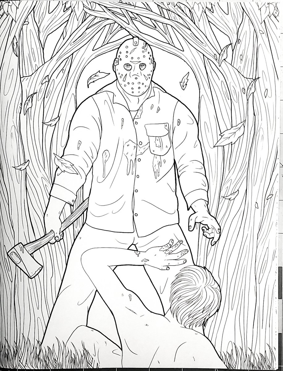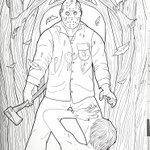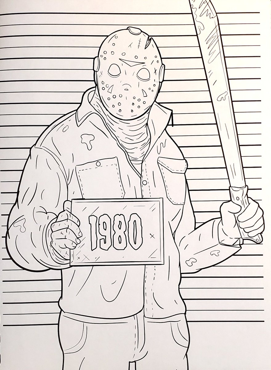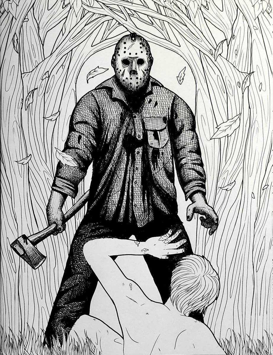 Day 13 of my #coloringbooktober art challenge presents you Jason. #drawtober #inktober #artober #horrorart #halloweenart #sketch #drawlloween #JasonVoorhees
