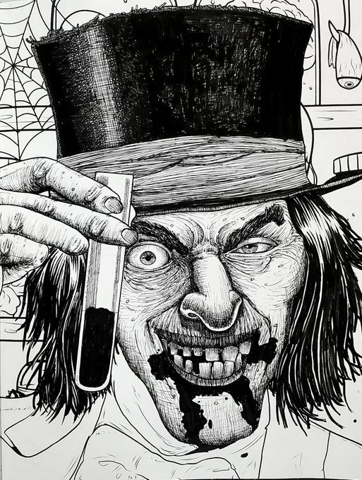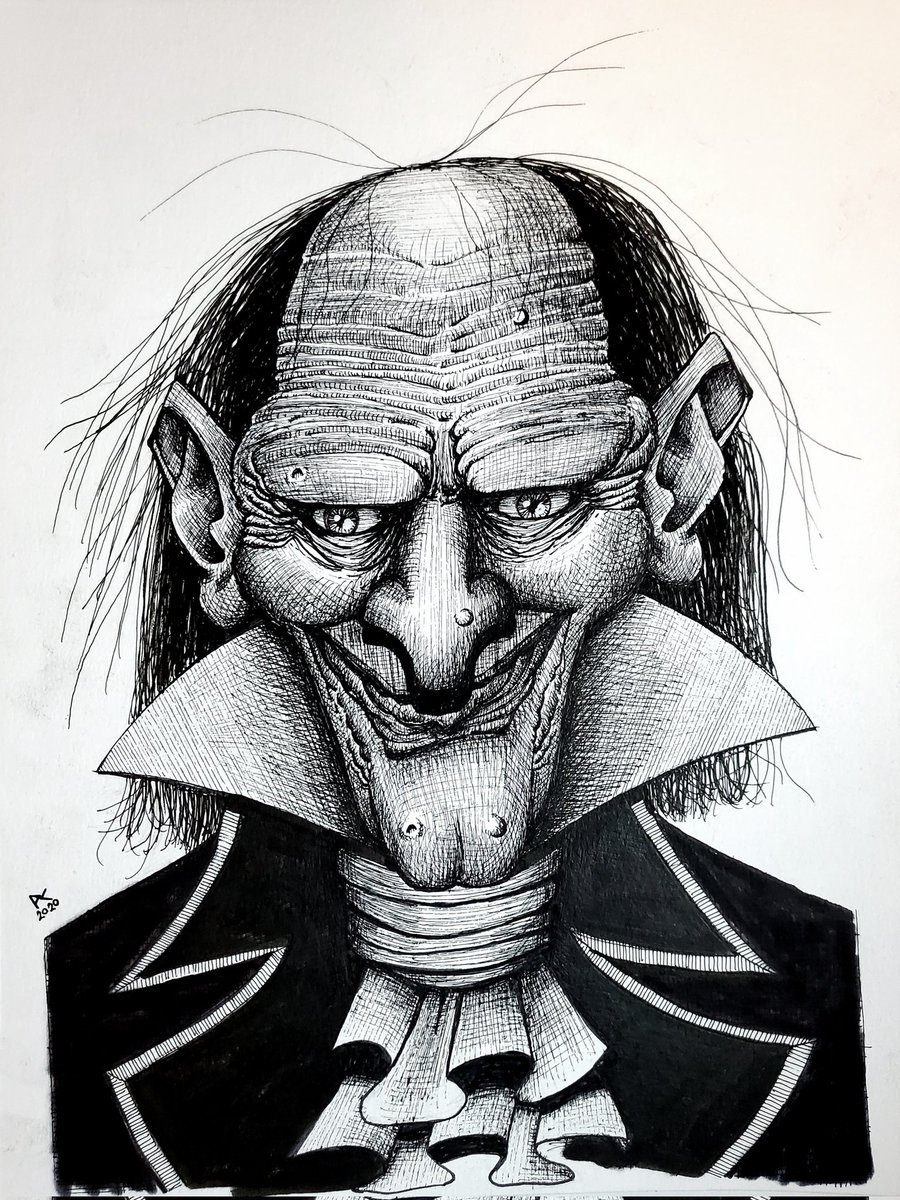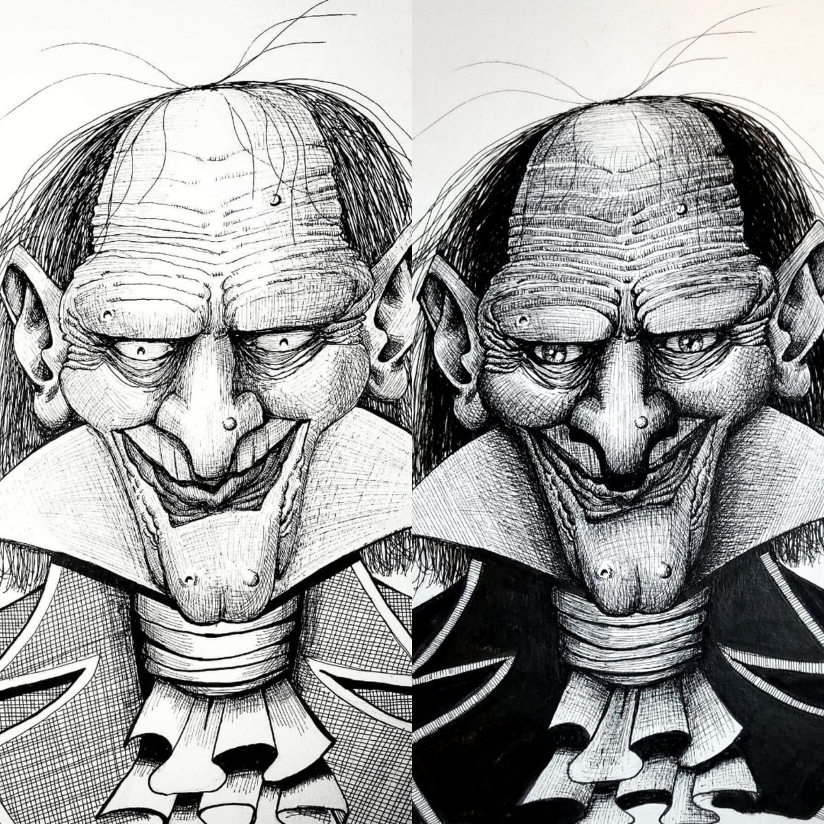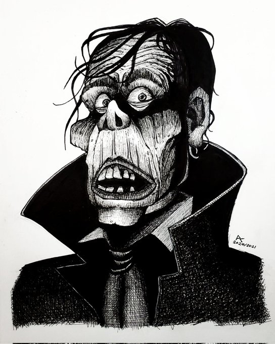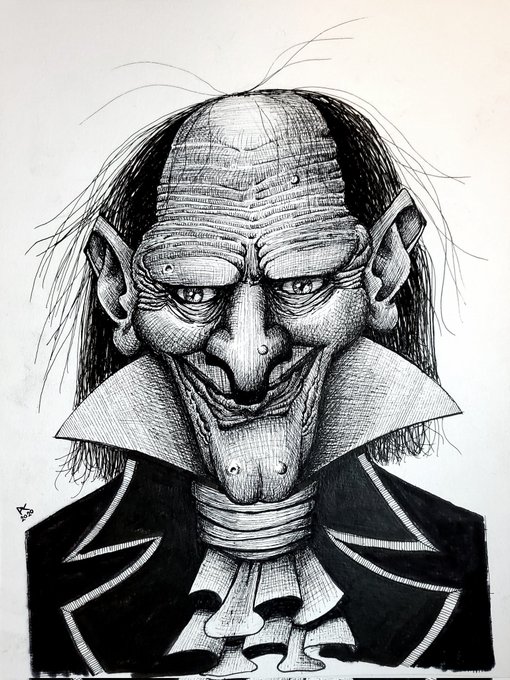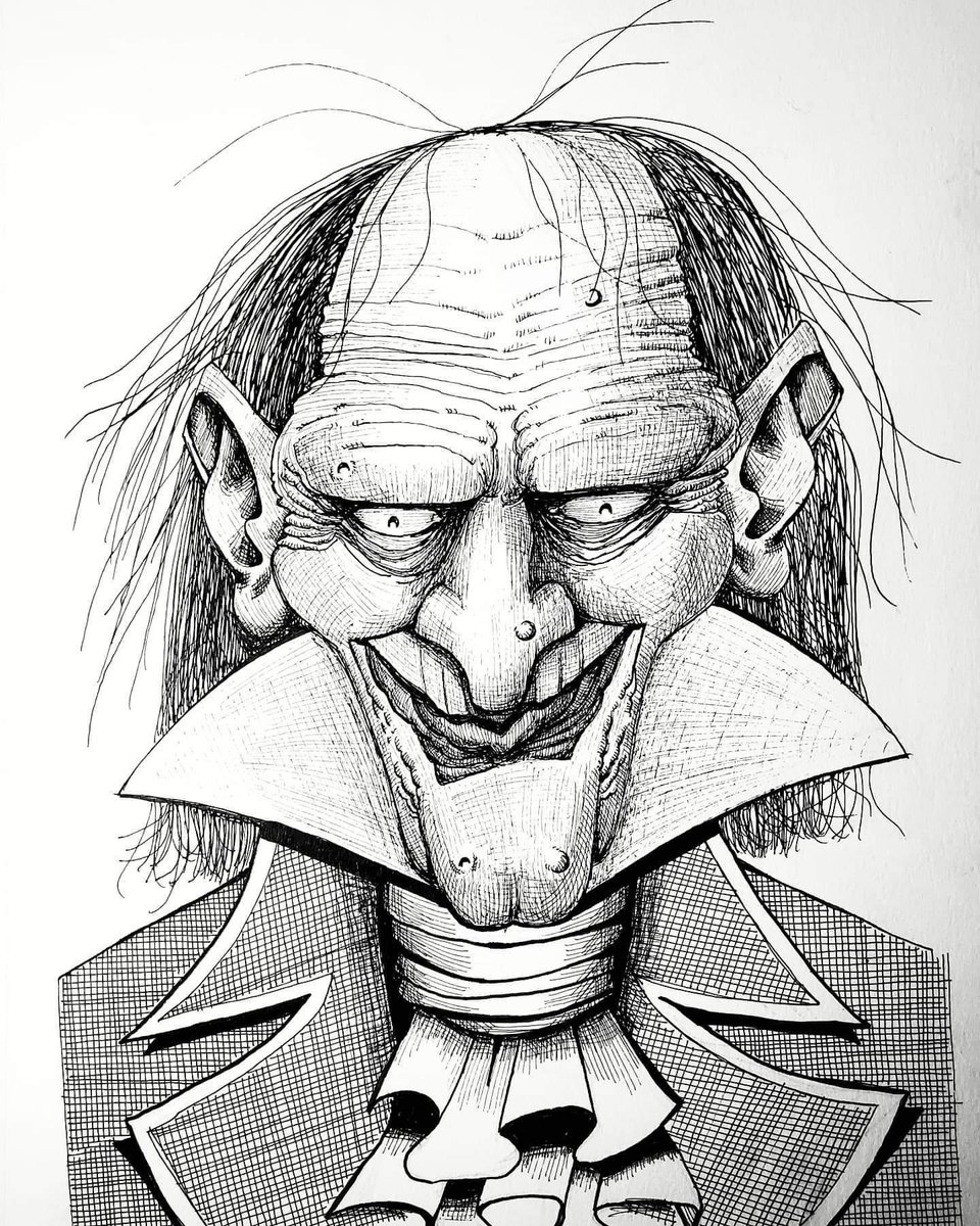 Uncle Creepy. I originally drew him exactly a year ago, but decided to add a lot more inking to the pic. Don't be afraid to add more ink! #ArtistOnTwitter #artist #art #inktober2021 #Inktober #INK #picoftheday #drawing #illustration #sketch #penandink #dreamfanart