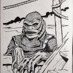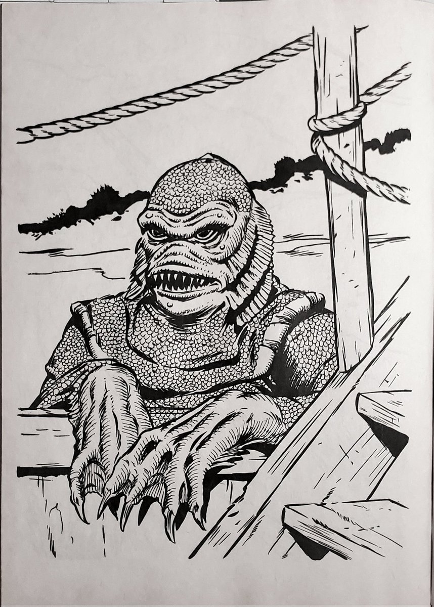 Day 8 of my #coloringbooktober art challenge presents you with Gill-man. #art #inking #drawtober #drawlloween #inktober #artober #picoftheday #halloweenart #inktober2022 #coloringbook #artwork