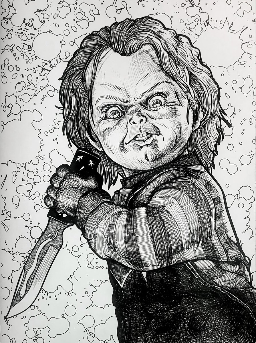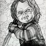 Day 9 of my #coloringbooktober art challenge presents you with Chucky. #art #inking #drawtober #drawlloween #inktober #artober #picoftheday #halloweenart #inktober2022 #coloringbook #artwork
