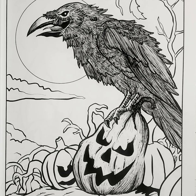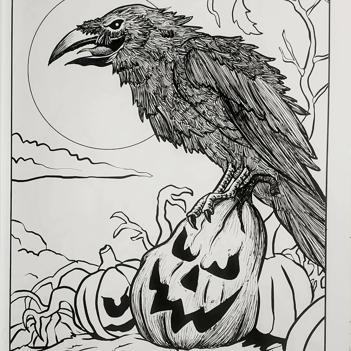 Day 2 of my #coloringbooktober art challenge presents you with Raven. #art #inking #drawtober #drawlloween #inktober #artober #picoftheday #inktober2022 #coloringbook #artwork