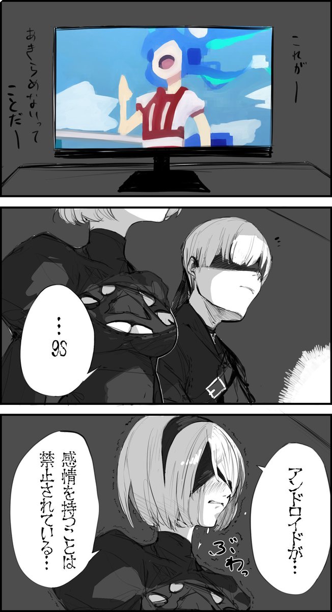ニーアオートマタ、アニメ化めでたい!!!!!!!!!!!!!!! 2BちゃんもN9くんもとても魅力的なキャラクターだし、お話も超面白いのでめちゃくちゃ期待しちゃう。