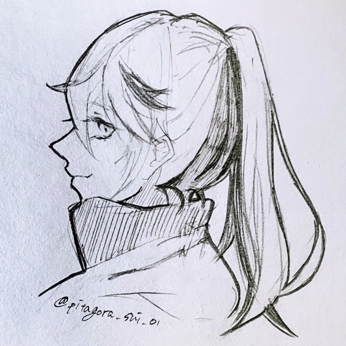 0 5 髪の毛の練習してた〜 筆圧が強くなりたい 2Bじゃないと濃くならん #かな絵 #KuzuArt #長尾百景 21/09/18 08:56