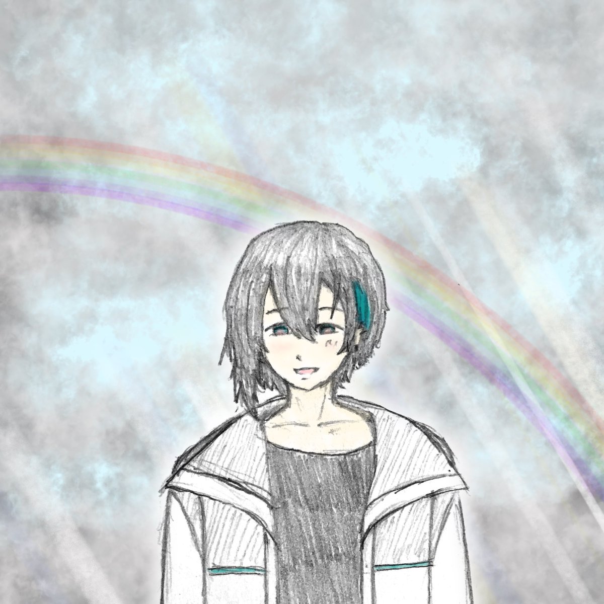 そーいえば色が似てるなぁって思ったので。 #長尾百景 #描いた晴 #上弦画 #ういはぁーと #マル描いてちょんっ #灰画