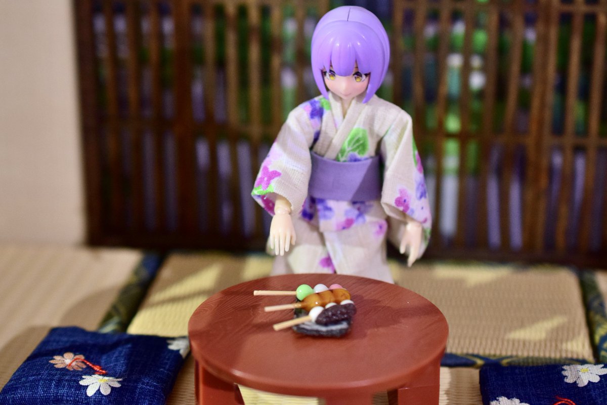 8 20 AKガーデン購入品③ ころぼっくるのミニチュア工房様(@mini_korobo )の座布団とお団子とお皿🍡 畳はぺちわ屋様(@pechiwaya ) 和風小物が増えてきて嬉しい! #ころぼっくるのミニチュア工房 #AKG22 #メガミデバイス 22/11/15 18:23