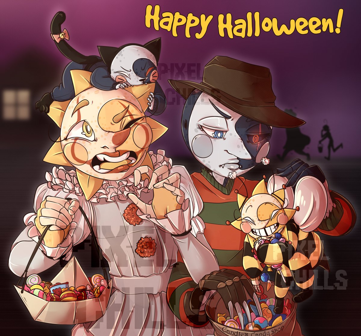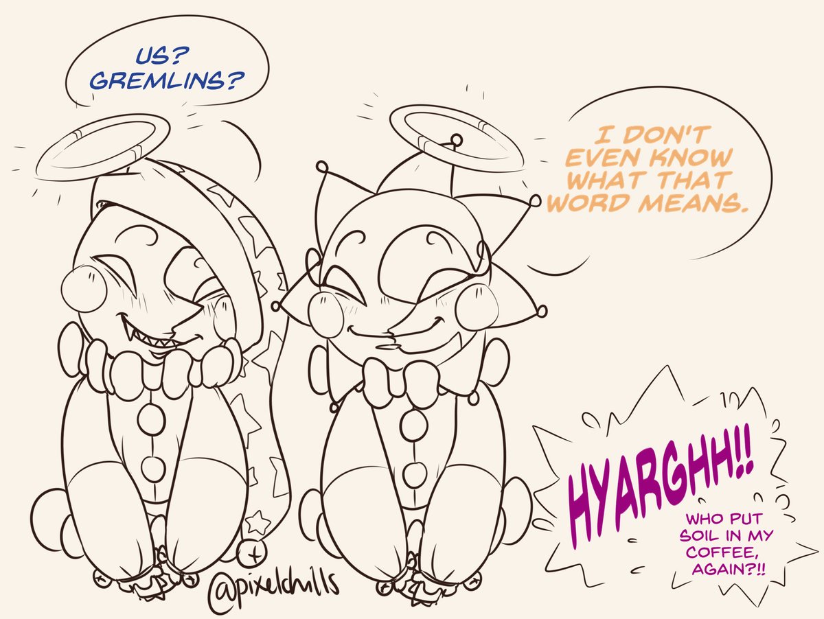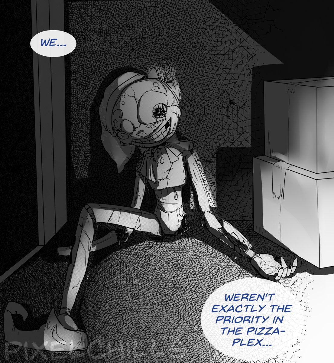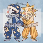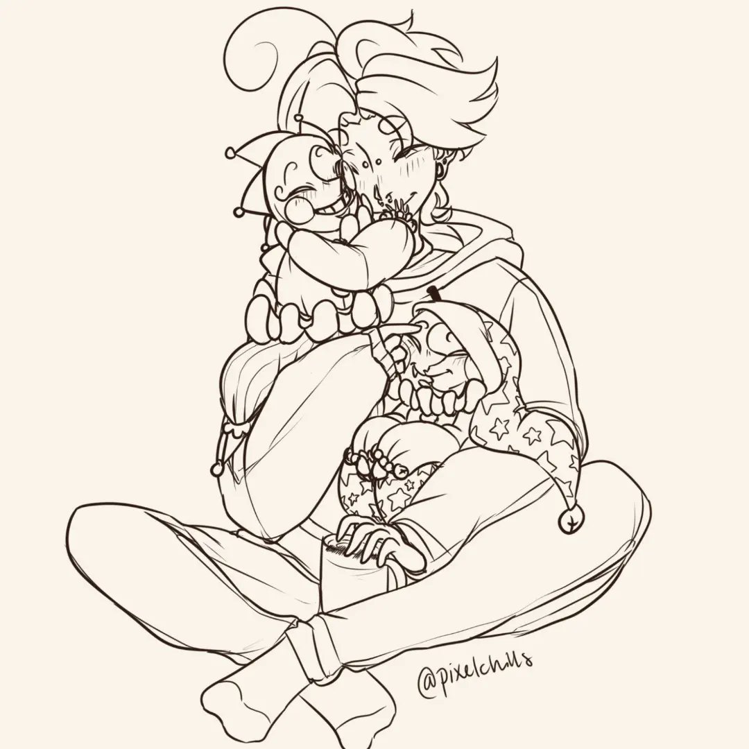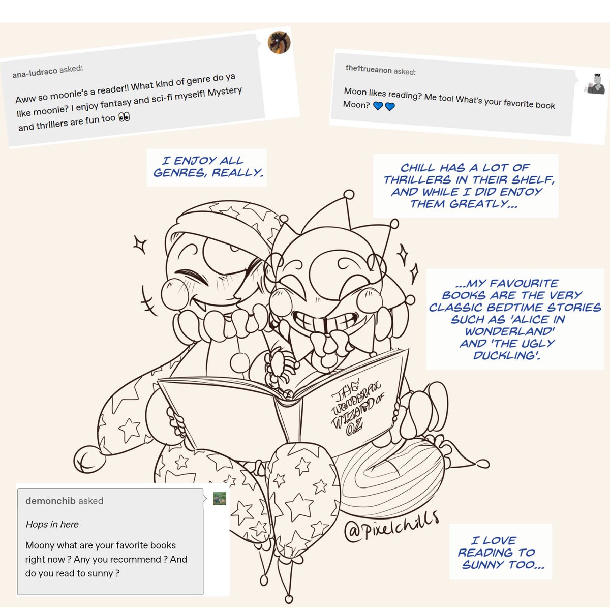More attempts to get rid of the artblock. Little gift sketch for @BoneJanky of our cute dollboyos together! Patch probably cracked the funniest joke in a history that has DD Sunny rolling :D #dolldrops #fnafsun #fnafmoon