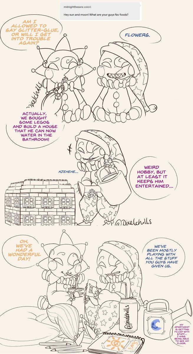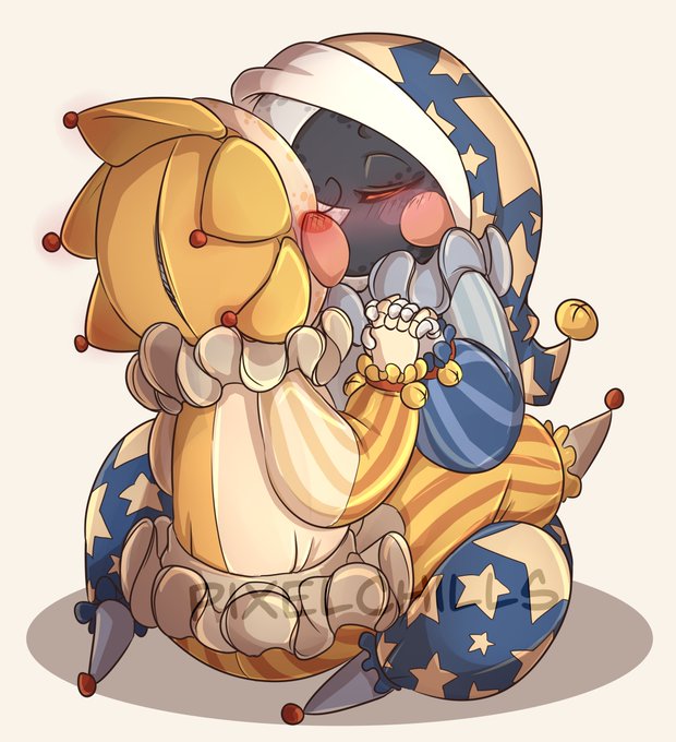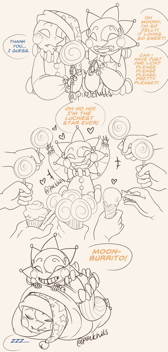 So I had a dream about these Sun and Moon dolls the other night... Comic version with some plot-explanation here: pixelchills.tumblr.com/post/679082780… #moondrop #sundrop
