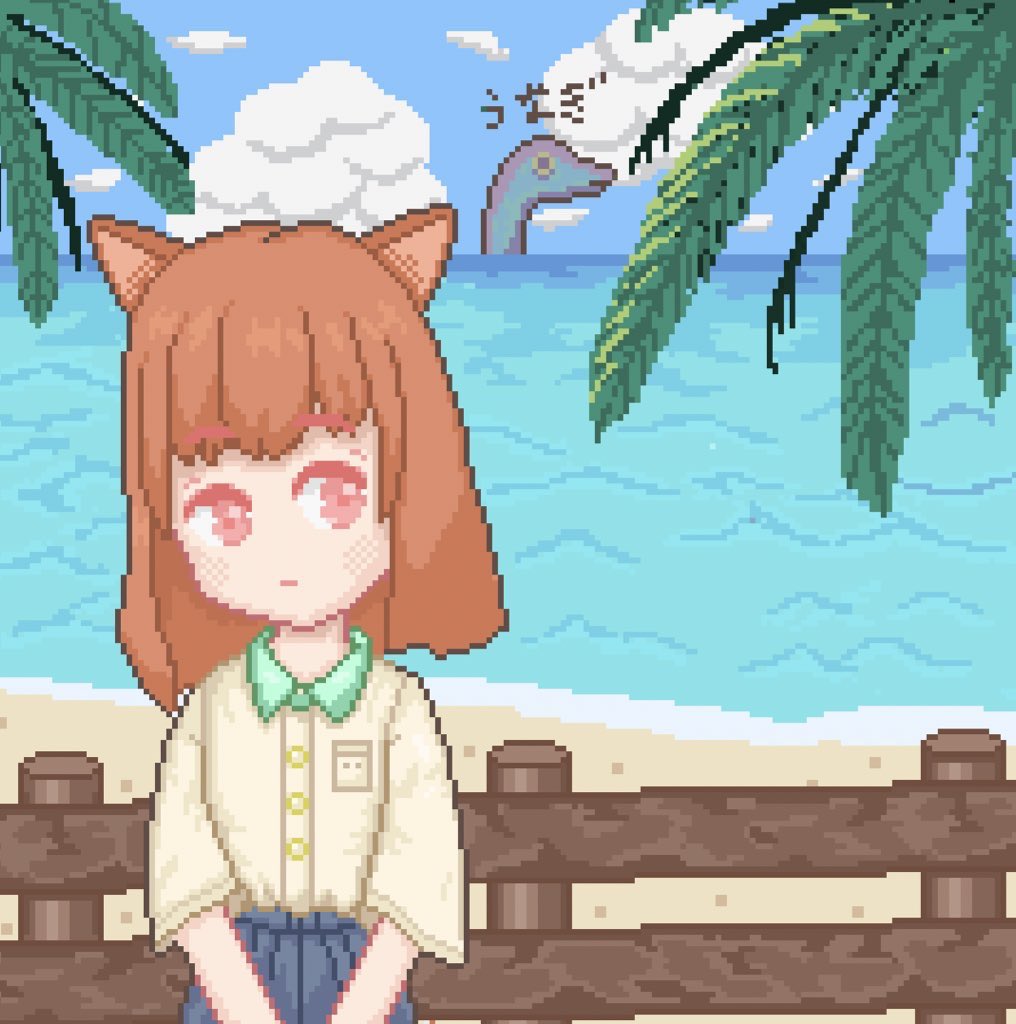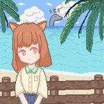 音彩ちゃん誕生日おめでとうございます🦔🍡🌸🍡✨ 夏っぽいドット絵を描いてみました🏖🦔🌊 #pixelart #ドット絵 #音彩の彩