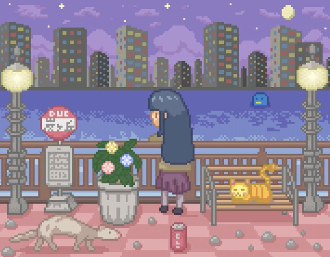 8 33 川沿いと街並み。 #ドット絵 #pixelart 23/01/08 17:30