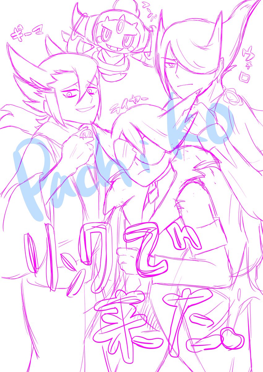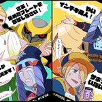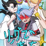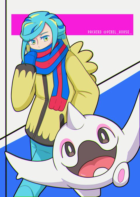 お題:ポケマスでよく使うキャラ めちゃくちゃ初心者なのですが、なぜかこの2人で組ませて使うとタイプ相性度外視で勝ちまくり、いつもエンブレムを取ってきてくれるのでめちゃくちゃ感謝しています、、 50分で滑り込み完成!! #ポケモントレーナー版深夜の真剣お絵描き60分一本勝負