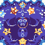 Let the seelies crown you moon child. (Dia 1 - Corona - Luna - Moonmon - Seelies) -Inktober recauchado -#SKELEWEEN2022 #pixelart #Digimon #GenshinImapct