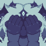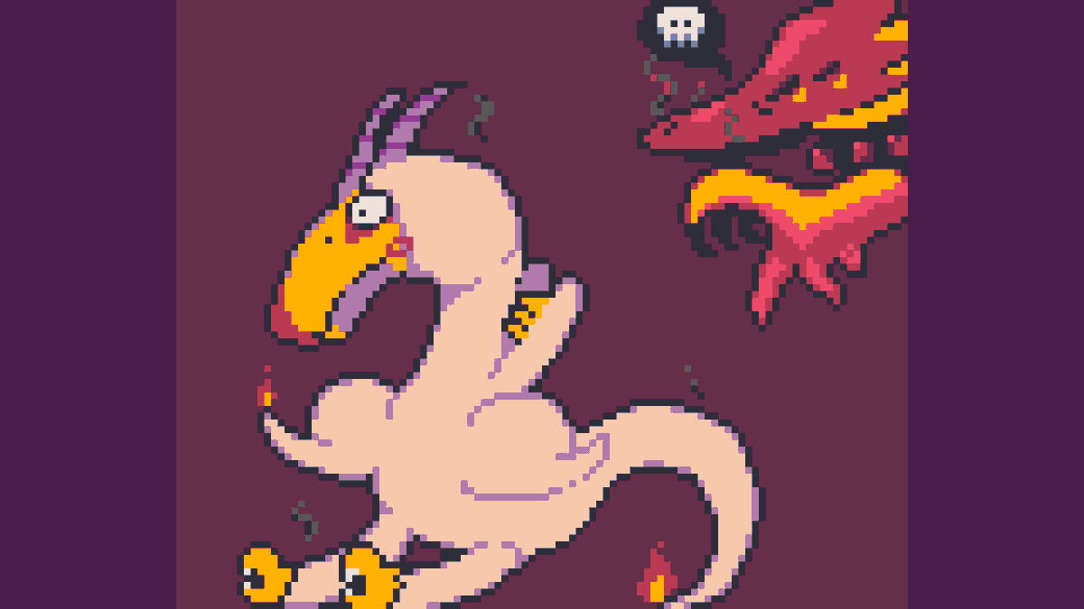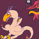 Don't worry valdurmon , your enchanted feather will grow up again! (Dia 17 - Piel de pollo - Enchanted-) -Inktober recauchado -#SKELEWEEN2022 #pixelart #Digimon
