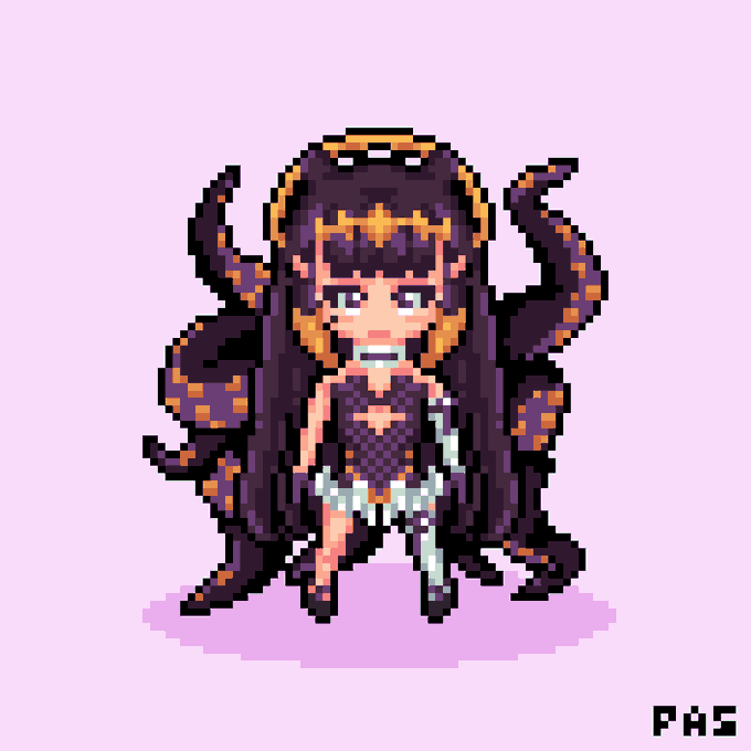 HoloMyth in Chibi Putting all 5 together looks pretty cool~ #KFPicasso #gawrt #inART #callillust #ameliaRT #pixelart #HololiveEN #ドット絵 #hololive #vtuberart #hololivemyth #aseprite