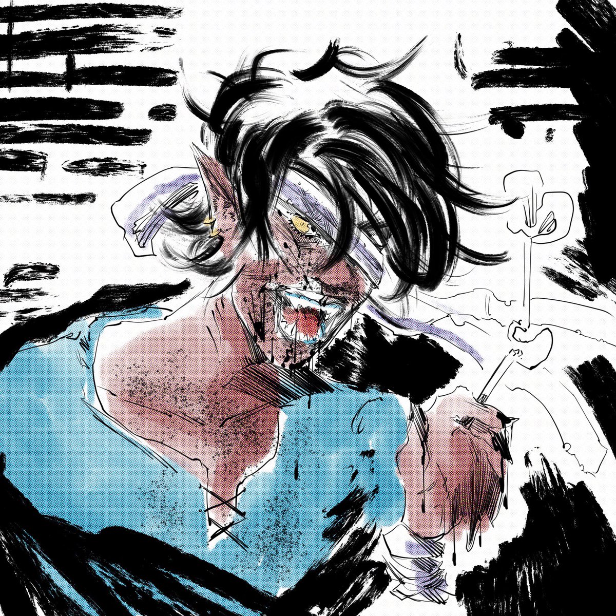 Monster, I guess? Watches Parasyte once. Today's #dailypostpunk Check out my wares, traveler: pixelateforwork.threadless.com . . #goth #gothgoth #postpunk #daily #sketch #illustration #occult #inktober #digitalart #illustrator #gothic #bodyhorror #horror #monster #teeth #tentacles