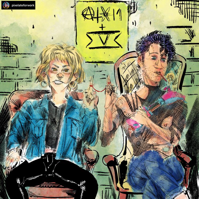 Have a “band pic” out of my comic. These are “Atom and Eve”. Adamowicz (L) and Everett (R). Today’s #dailypostpunk #inktober2020 #doodle #comicbookcolorist #sketch #digitaldrawing #digitalsketch #digitaldoodle #ocs