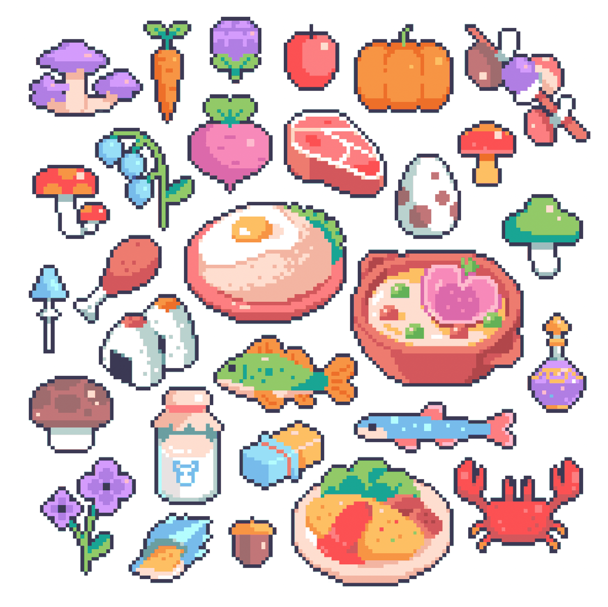 🍙🍜🥞 #pixel #pixelart #ドット絵
