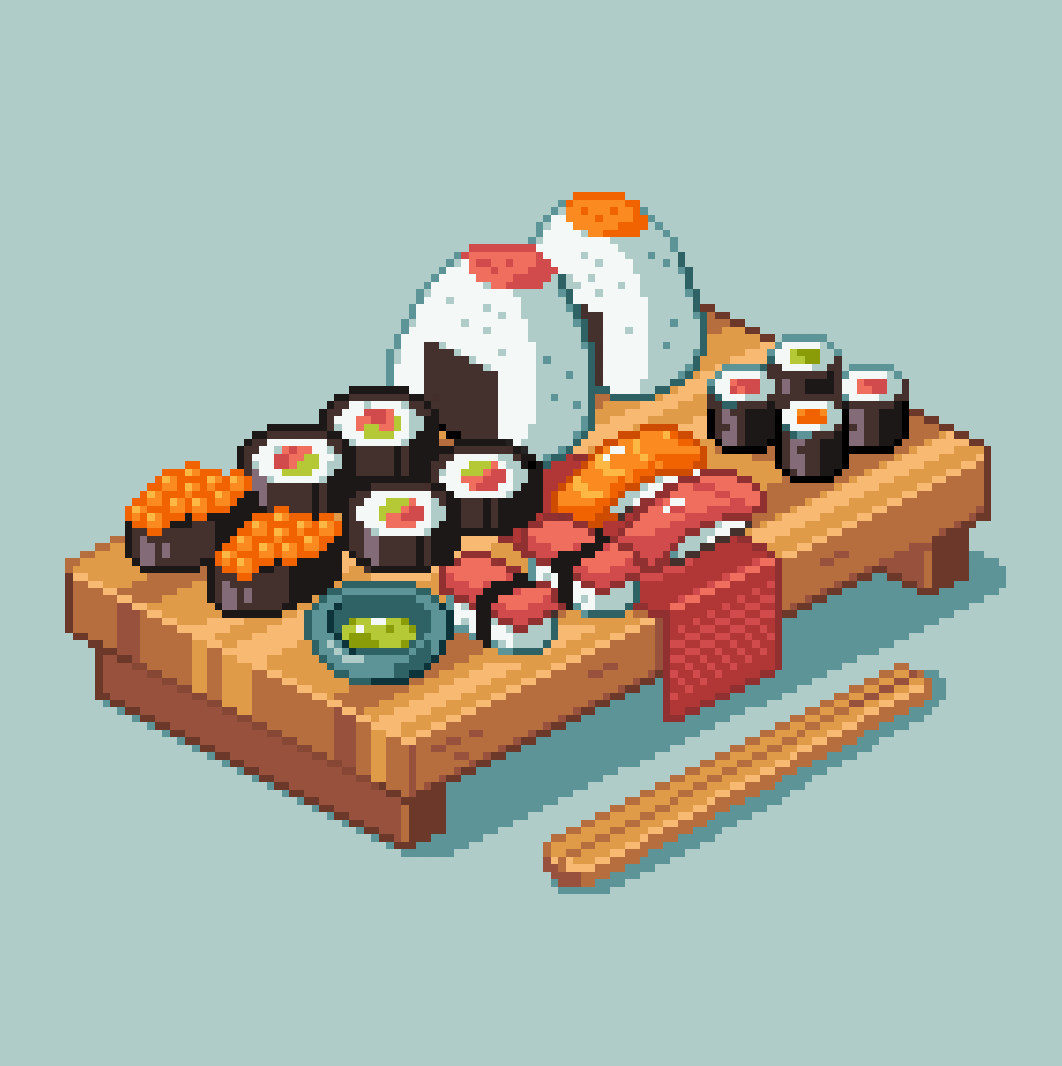 I really like to draw food🤤🍣🍙 #pixelart #ドット絵