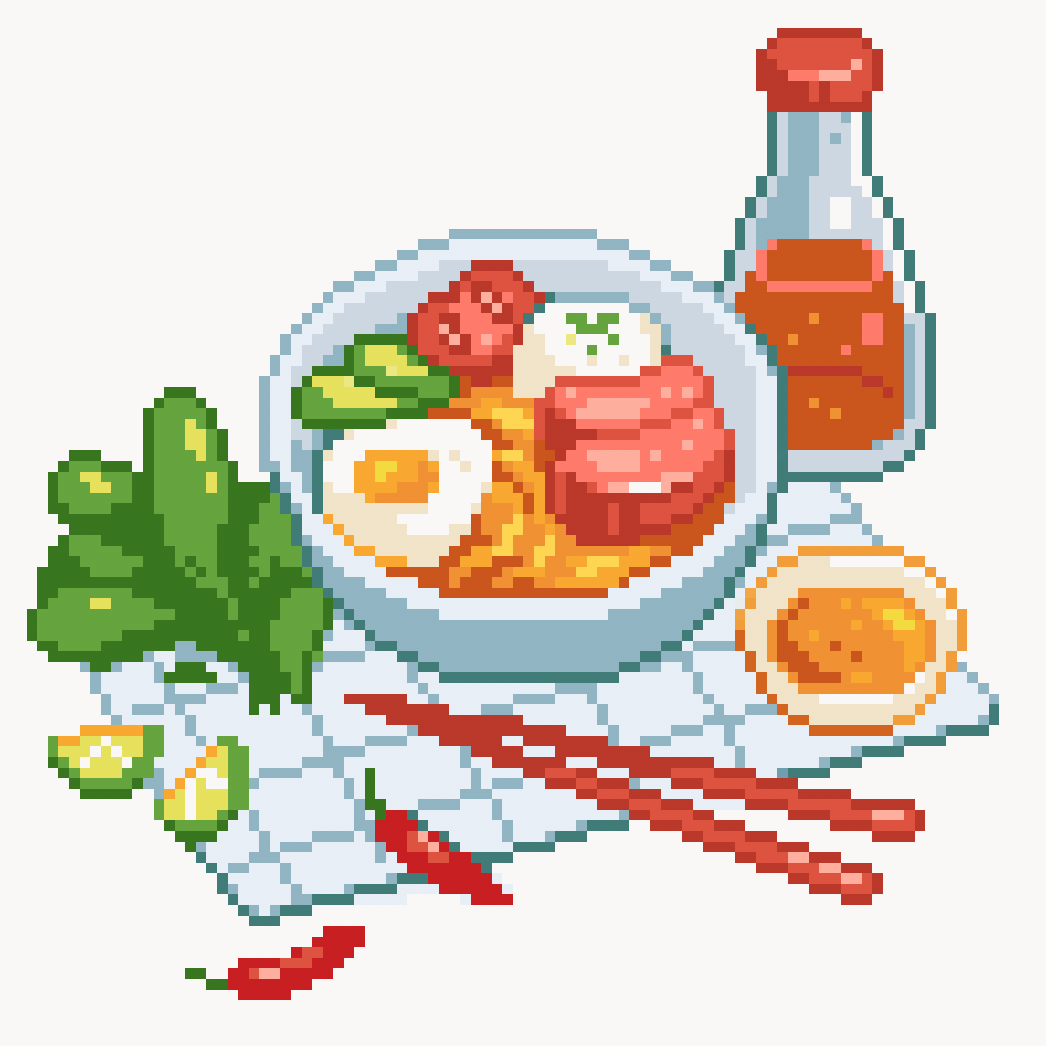 45 224 Hello #Cheftember! I love to draw food so much😋🍜🍙 #pixelart 20/09/22 01:46