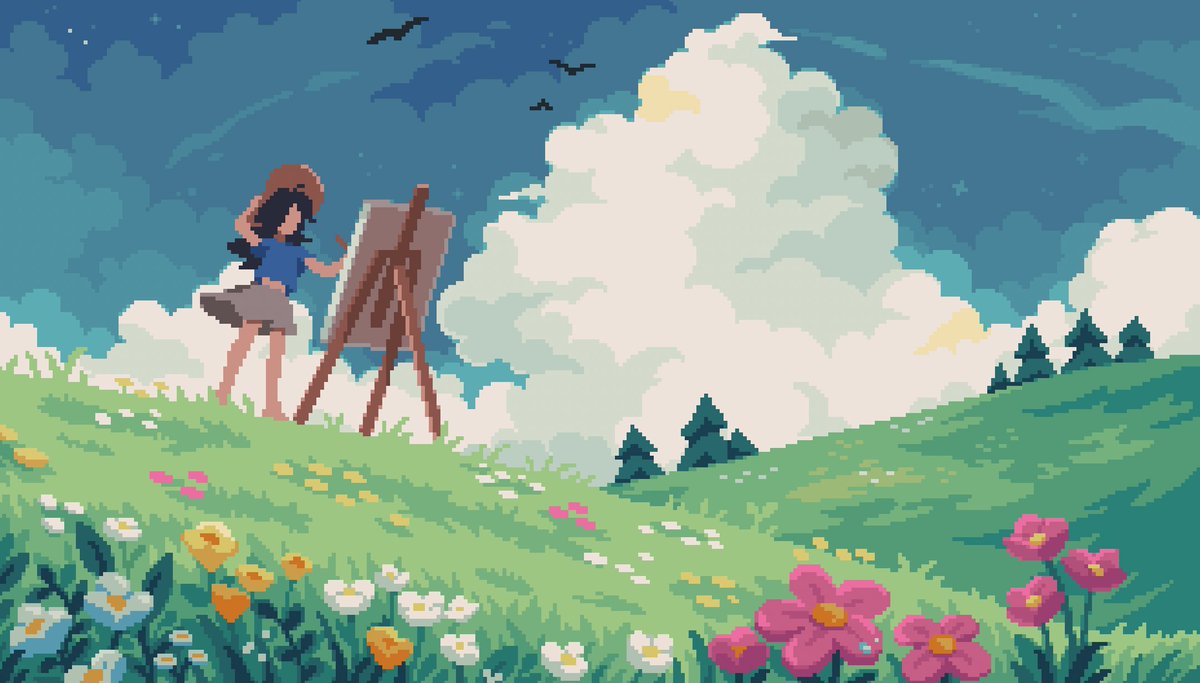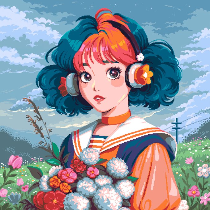 654 4560 🌺🌿☁️ #pixelart #ドット絵 23/02/06 17:26