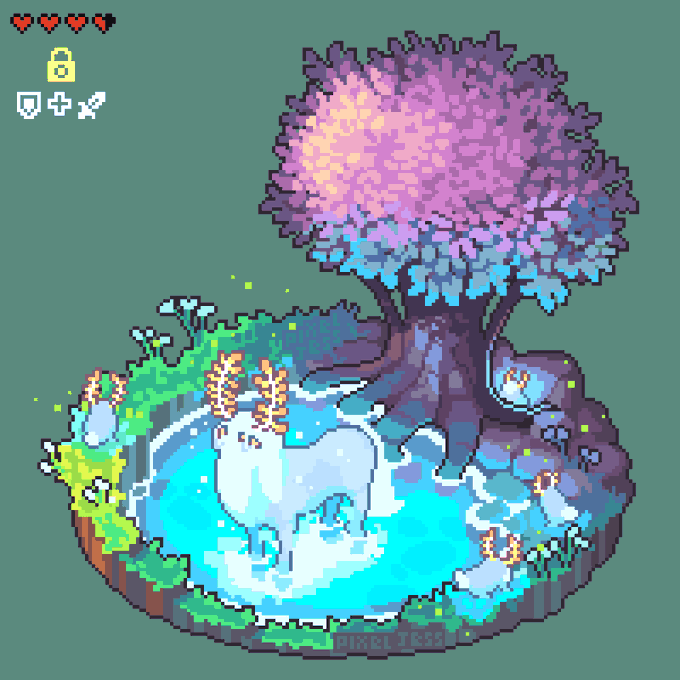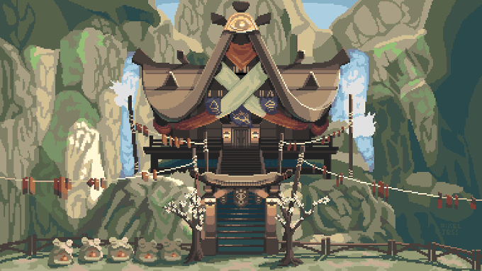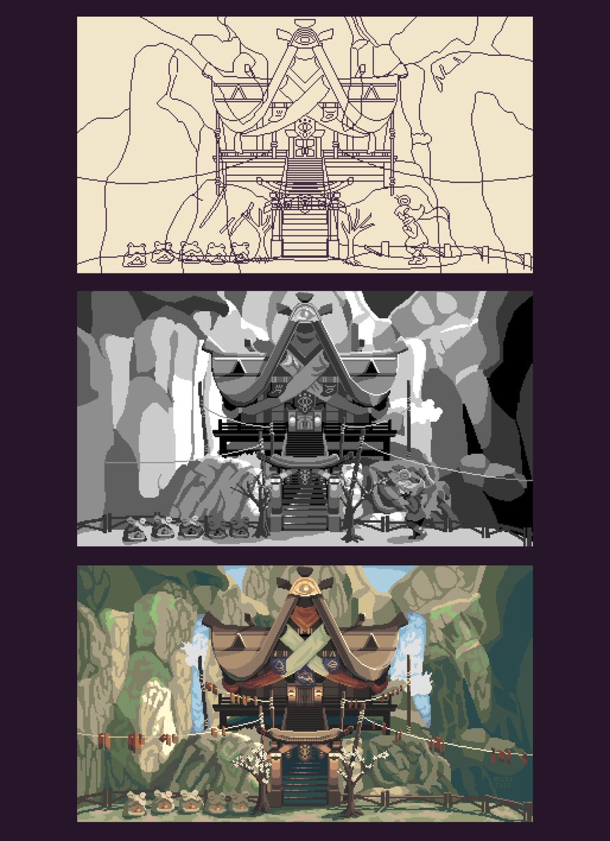 115 1000 Pixel process for my Kakariko Village piece! Line art -> Shading -> Final #pixelart 22/03/04 01:47