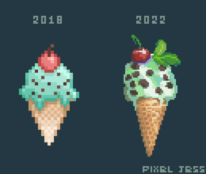 145 1884 Mint chocolate chip ice cream 🍦 #pixelart For my may challenge theme, "remaster", I tackled one of my first attempts at pixel art. 22/05/28 00:45