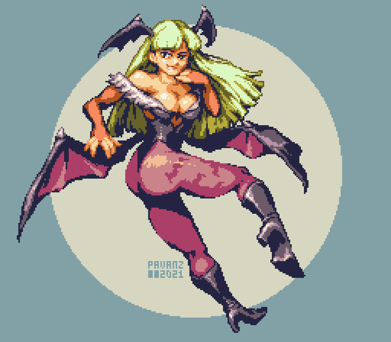 So, there's this pixel Morrigan fad going around #pixelart #ドット絵