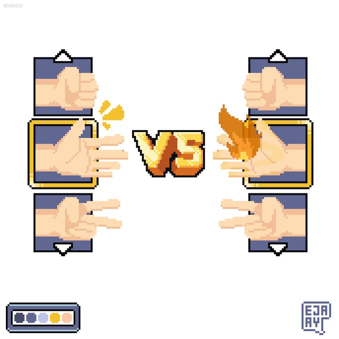 rock paper scissors... "that's fire. it beats everything." -𝘑𝘰𝘦𝘺, 𝘍𝘙𝘐𝘌𝘕𝘋𝘚 (2003) 🪨📄✂🔥 @Pixel_Dailies #pixel_dailies #RockPaperScissors #artph #pixelart #ドット絵