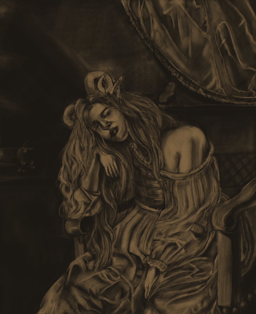 artemisia gentileschi’s mary magdalene in melancholy but she’s a tiefling (#dnd #dndart #dndartist #art #digitalart)